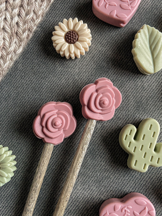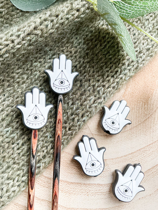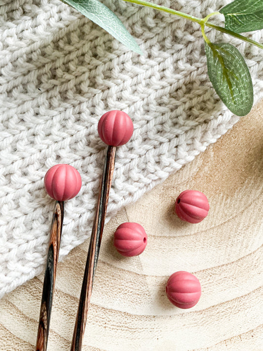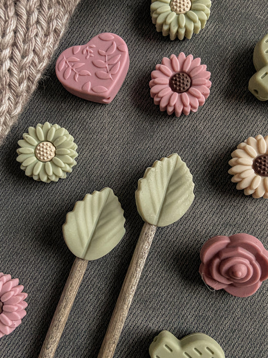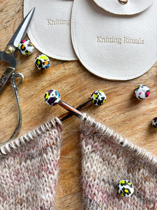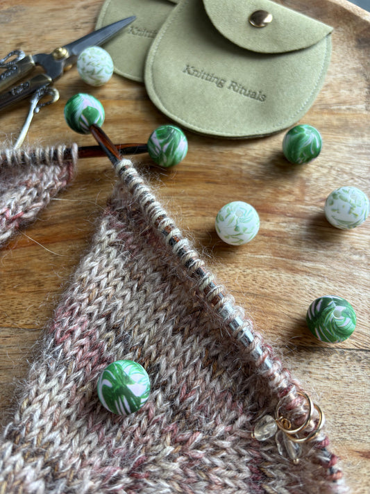 Lykkjustopparar geta verið afar hentugir framan á prjónana til þess að hindra það að lykkjurnar detti niður af prjóninum