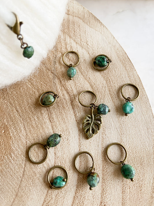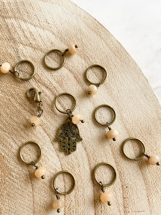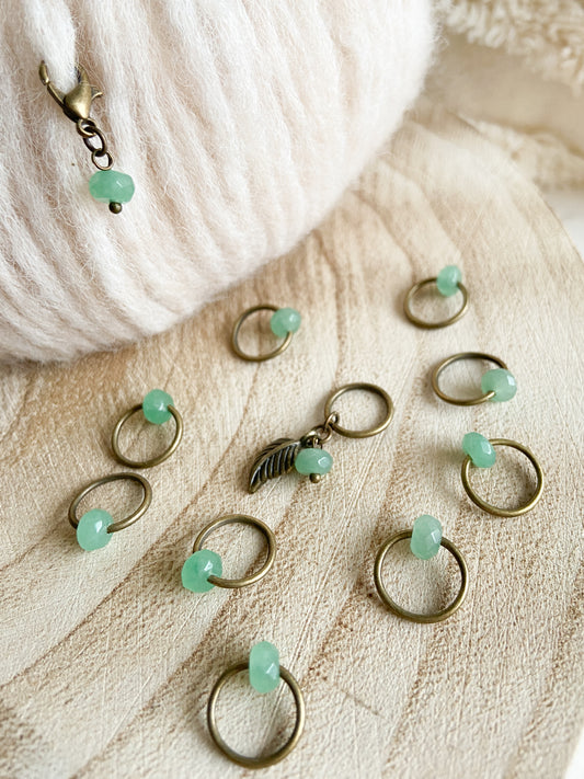 Prjónamerkjasett með 10 merkjum í antík brons lit