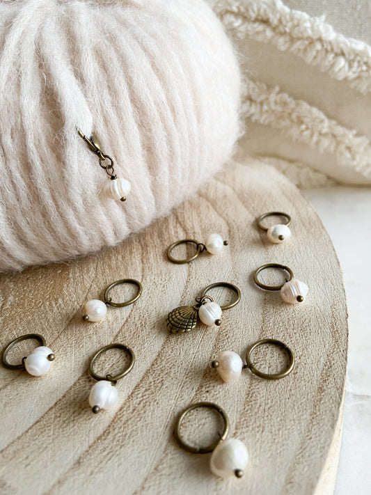 Þessi sett voru hugsuð út frá því að hafa allt sem þyrfti þegar prjónað væri laska á lokaða peysu, þ.e.a.s. 1 upphafsmerki, 8 merki fyrir framan og aftan laskalykkju og svo 1 framvindumerki til þess að fylgjast með lengd á bol eða til þess að krækja í flíkina til þess að minna á breytingar í uppskrift.
