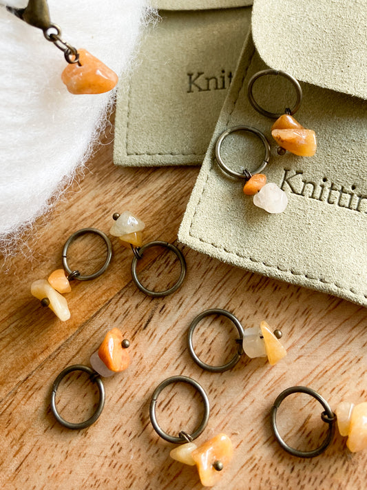 Að sjálfsögðu nýtast þessi prjónamerki í öll verkefni eins og hver önnur, og alls ekki alltaf sem þarf að nýta þau öll. Settin koma á opnanlegum hring sem heldur utan um merkin þegar þau eru ekki í notkun.