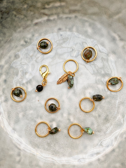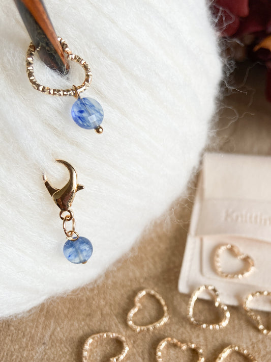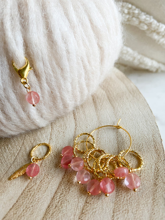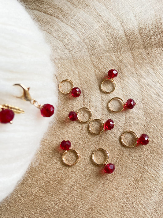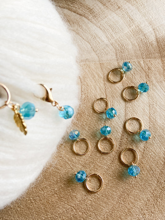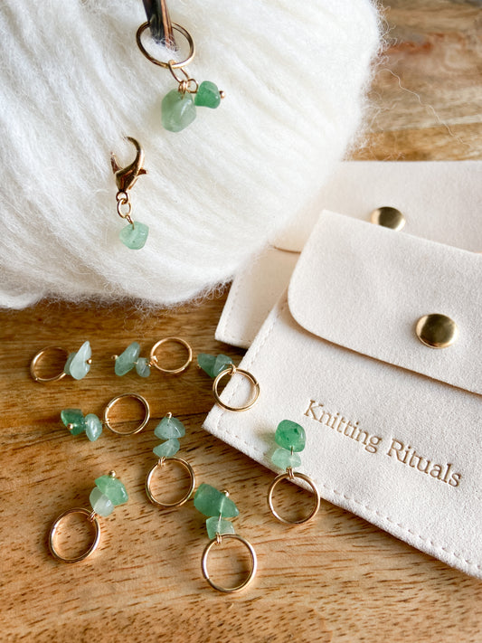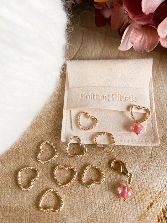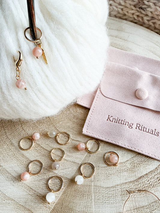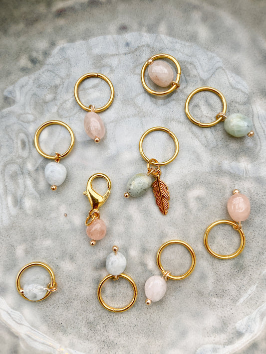 Að sjálfsögðu nýtast þessi prjónamerki í öll verkefni eins og hver önnur, og alls ekki alltaf sem þarf að nýta þau öll. Settin koma á opnanlegum hring sem heldur utan um merkin þegar þau eru ekki í notkun.