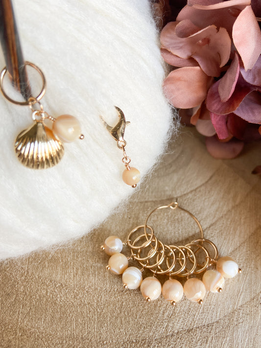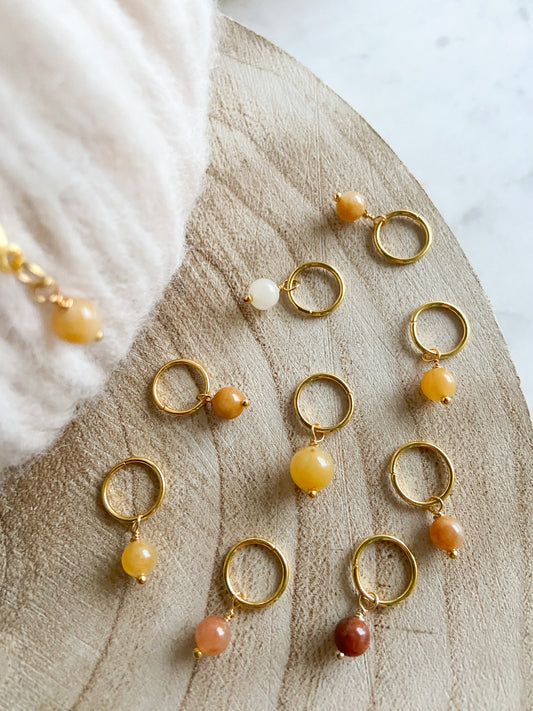 Prjónamerkjasett með 10 merkjum í gylltum lit