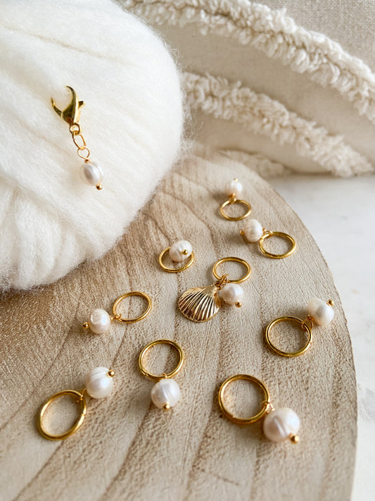 Þessi sett voru hugsuð út frá því að hafa allt sem þyrfti þegar prjónað væri laska á lokaða peysu, þ.e.a.s. 1 upphafsmerki, 8 merki fyrir framan og aftan laskalykkju og svo 1 framvindumerki til þess að fylgjast með lengd á bol eða til þess að krækja í flíkina til þess að minna á breytingar í uppskrift.