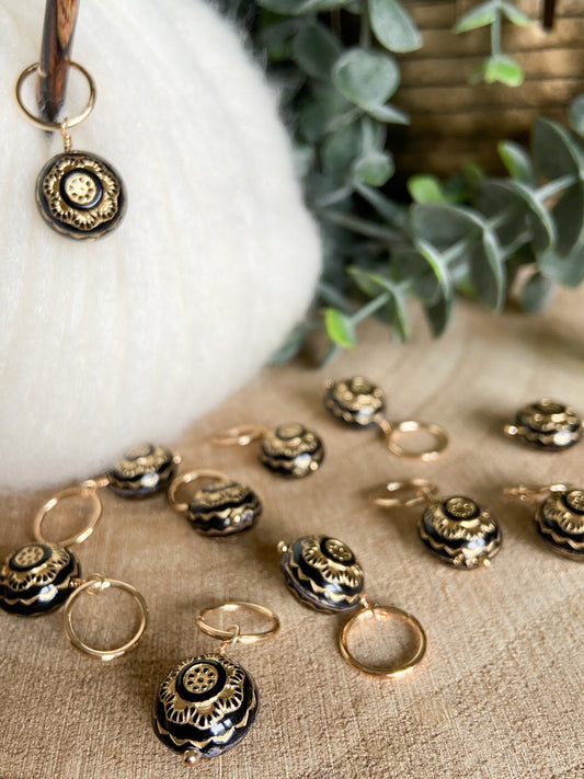 Hér getur þú keypt stök prjónamerki í gylltum lit