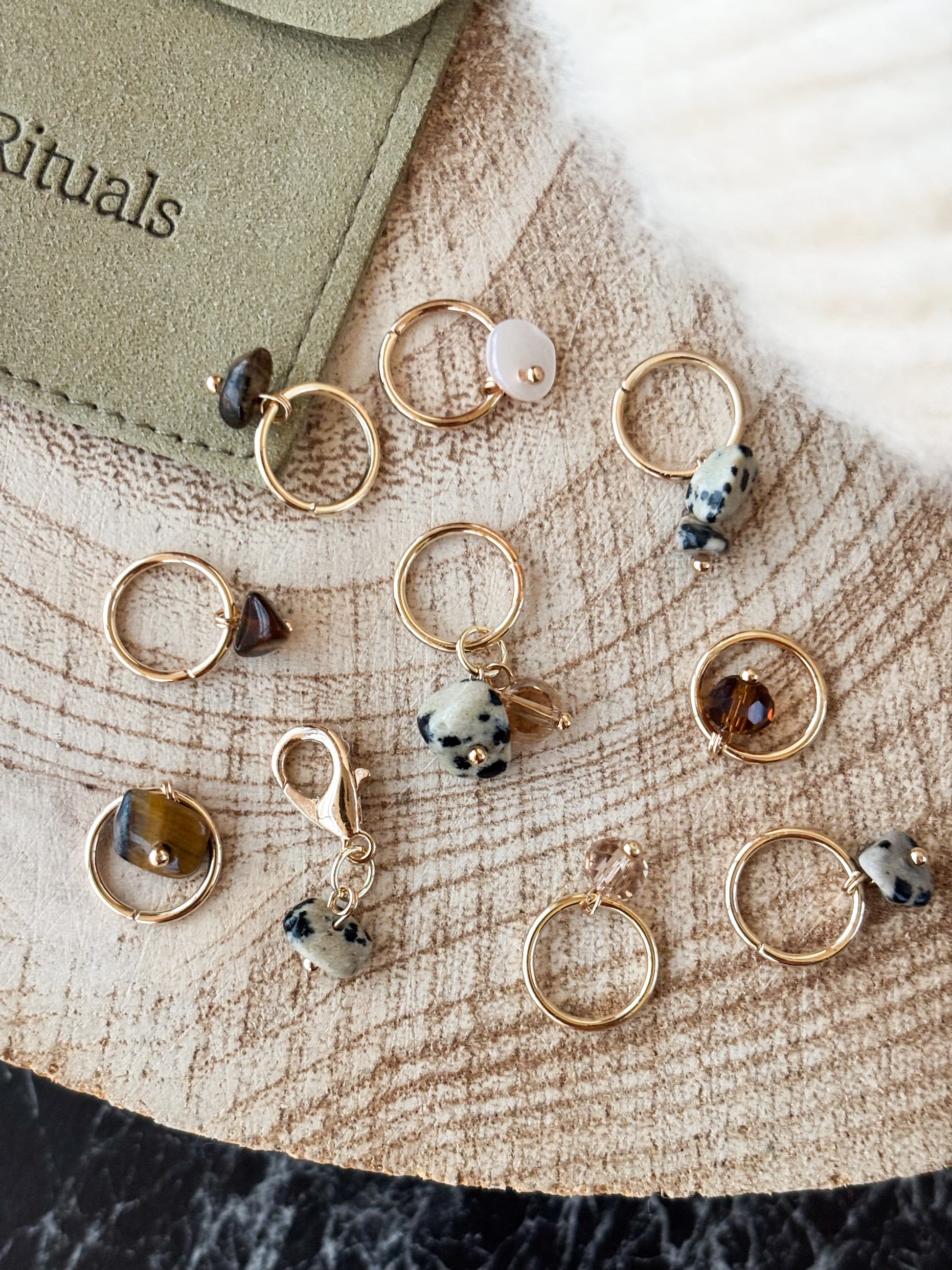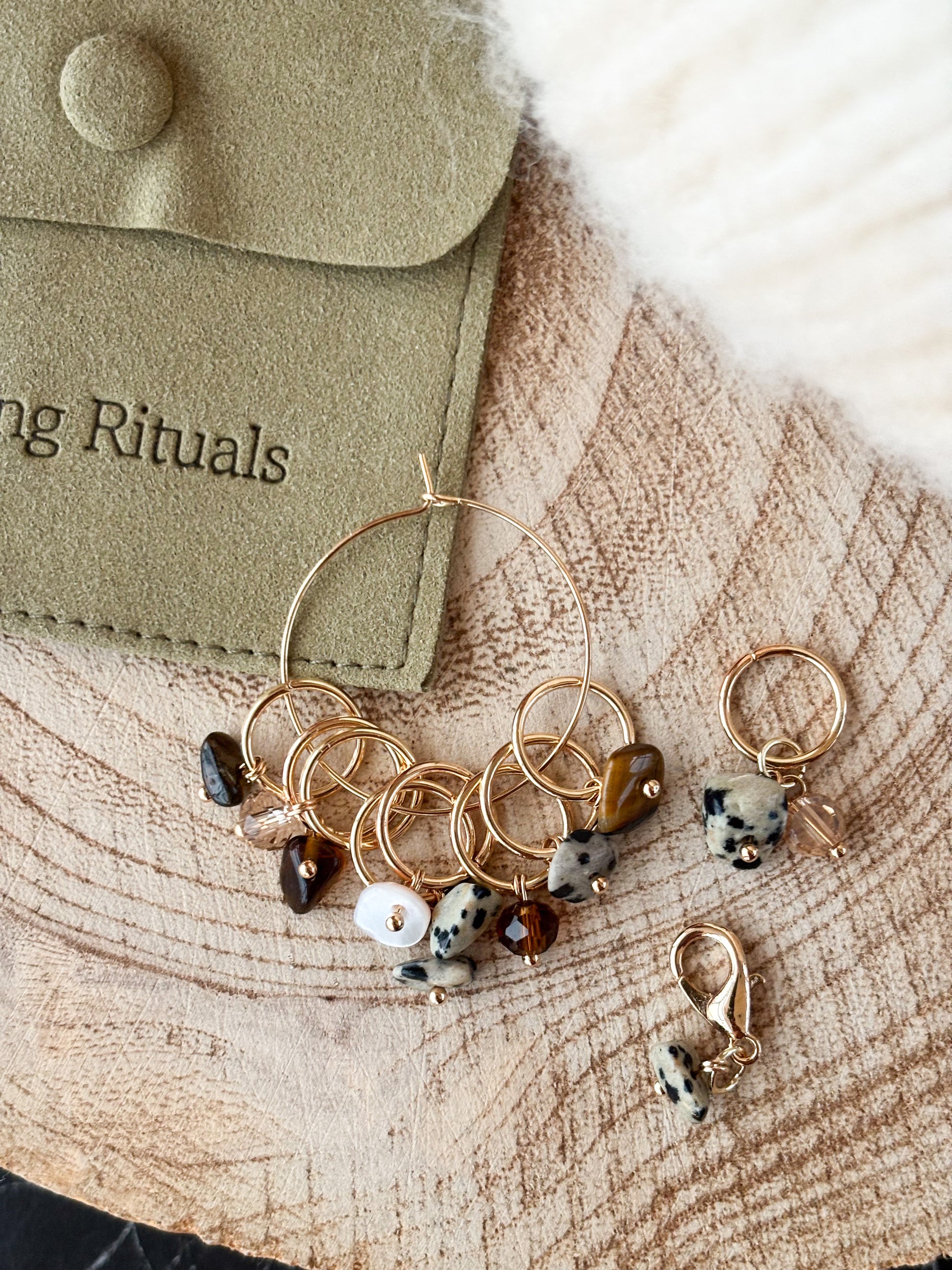 Fallegt Laskasett með blöndu af Dalmatian jasper steinum, Tiger eye orkusteinum og kristalsperlum.