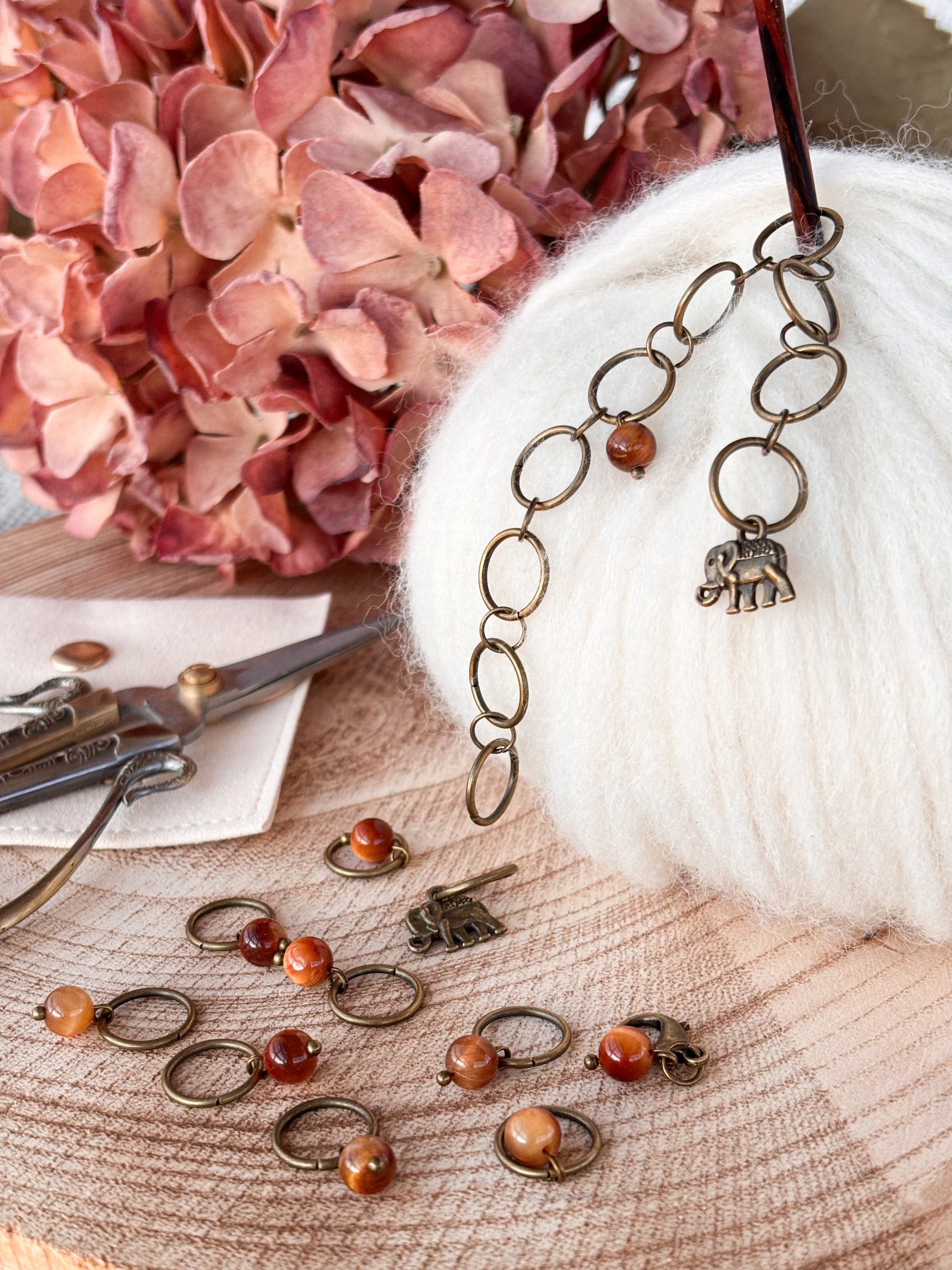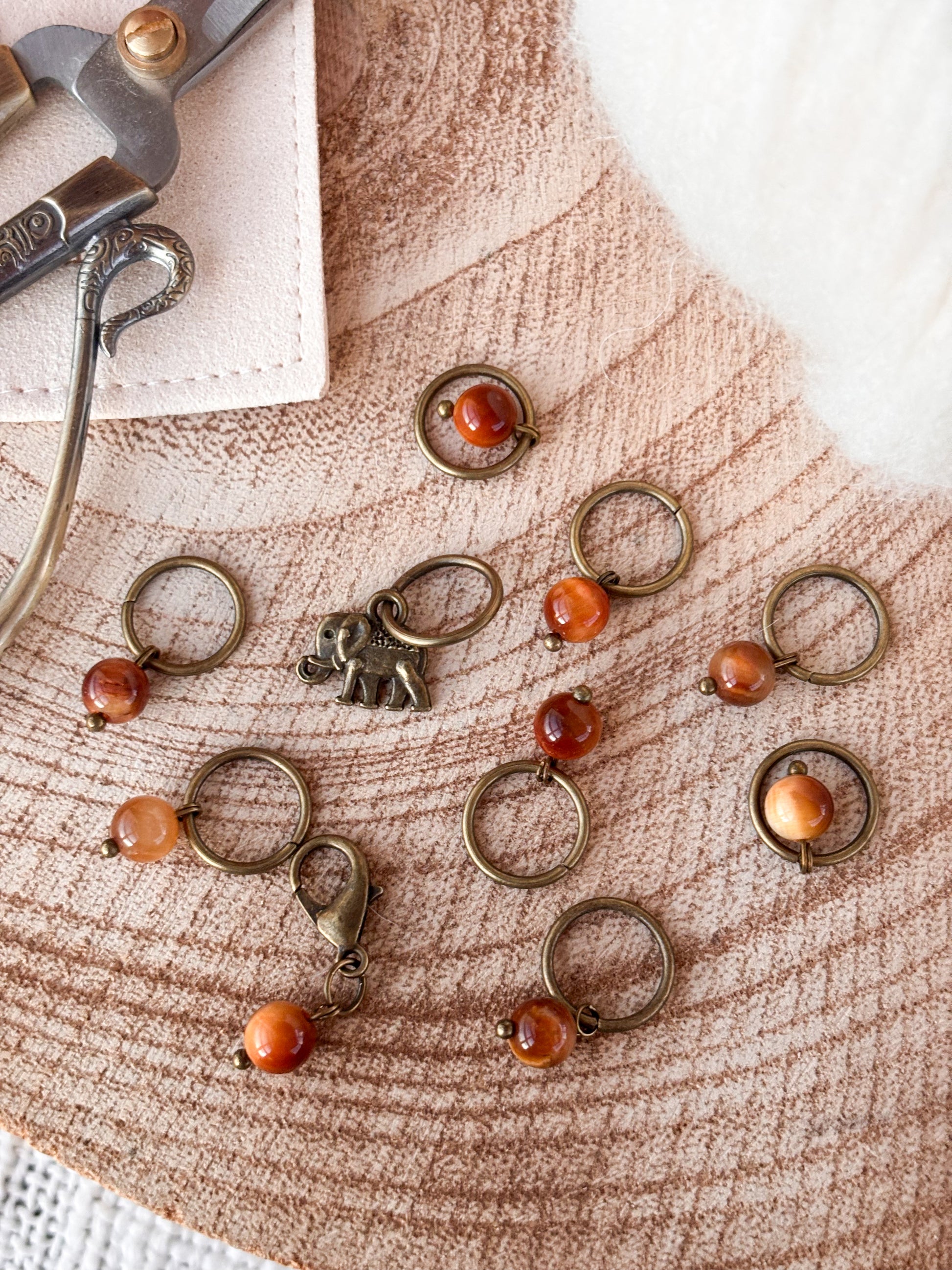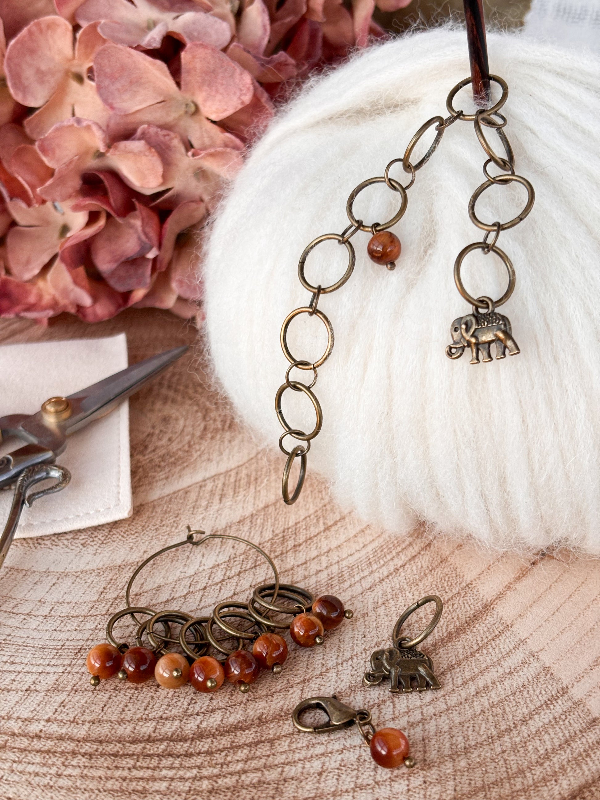 Fallegt laskasett og umferðateljari þar sem fílinn minnir okkur á jarðtengingu og rauði Tiger eye steinninn örvar orkustöðvarnar