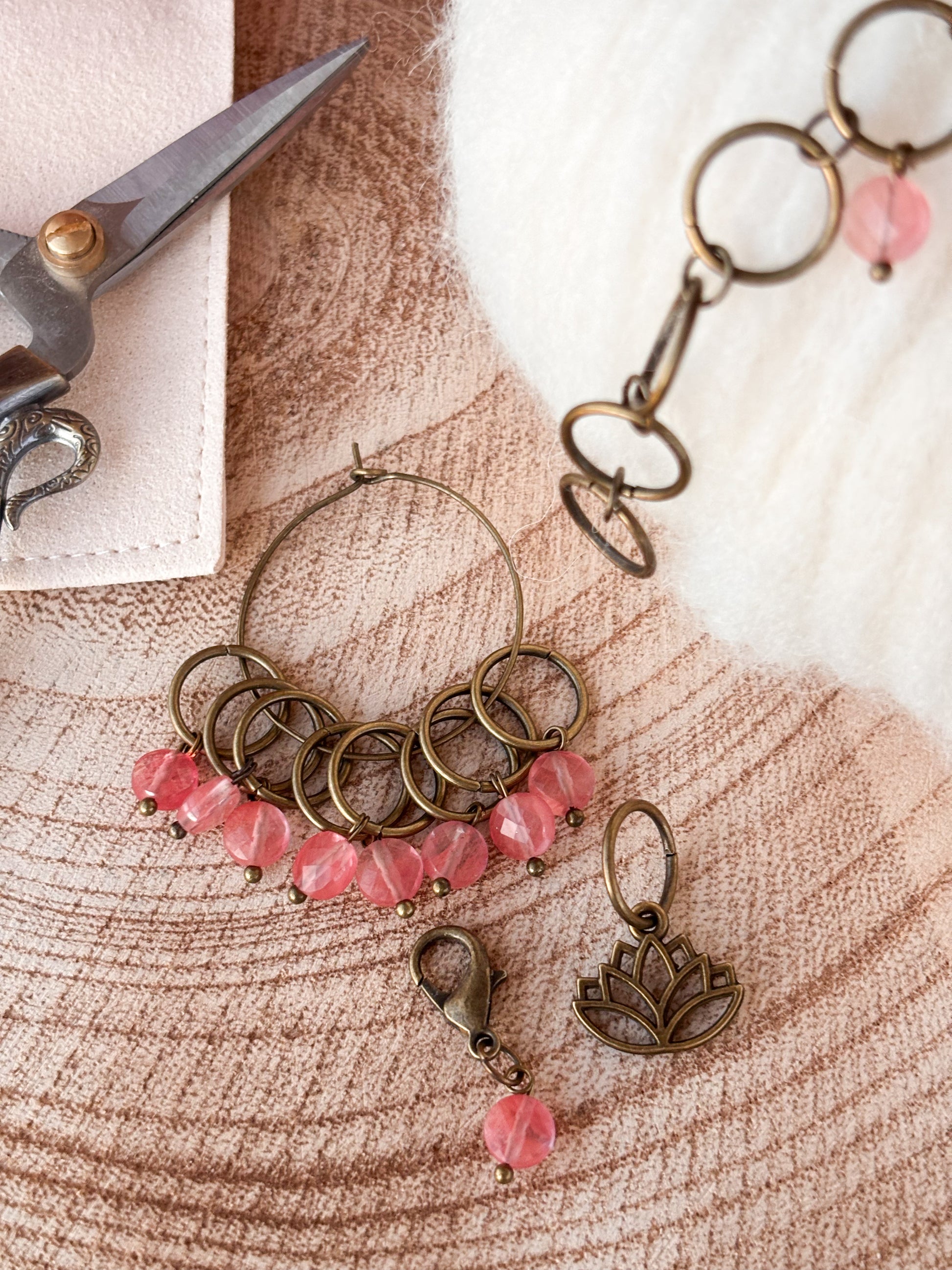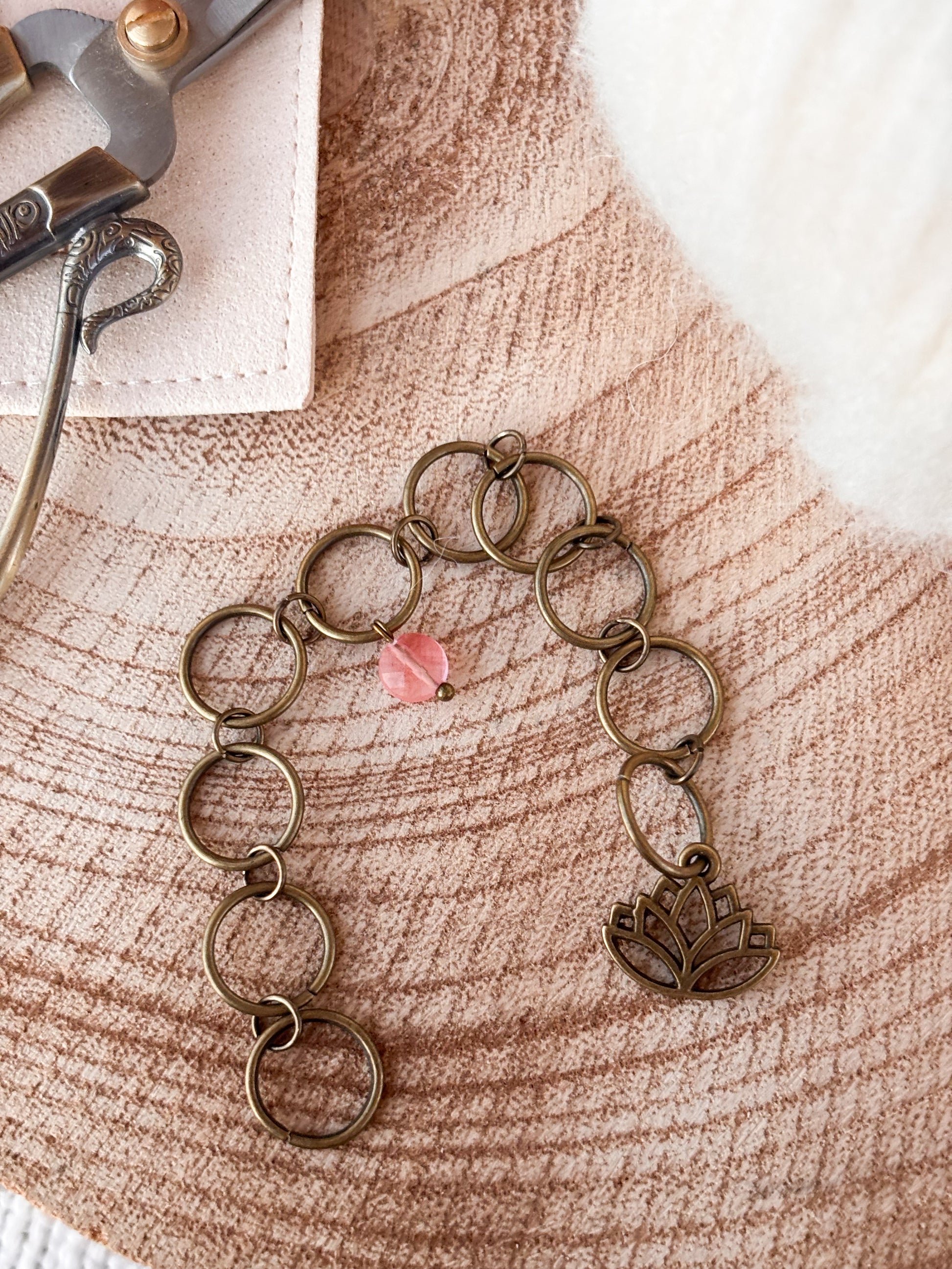 Fallegt laskasett og umferða teljari með Lotus blóminu og bleikum Quartz steinum